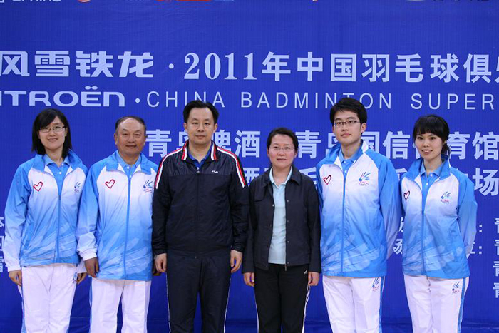 团中央第一书记陆昊、团山东省委书记王磊与我校志愿者陈新元、黄檬在一起