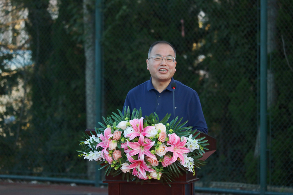 丁林致开幕辞并宣布“秋之实”体育文化节开幕。他首先代表学校党委和行政向青岛泰凯英轮胎有限公司表示感谢,并指出,2021年是学校体育综合改革全面铺开的关键一年。在秋季果实累累的美好时节,学校成立大学生体育联盟,举办“秋之实”体育文化节,正当其时、十分必要、意义深远,将直接推动大学生参与到“月月有联赛、周周有比赛、人人都参赛”的联赛格局中来,这是学校全面推进体育综合改革的一件大事、喜事,也是发挥体育综合育人功能、全面落实立德树人根本任务的实事、好事。