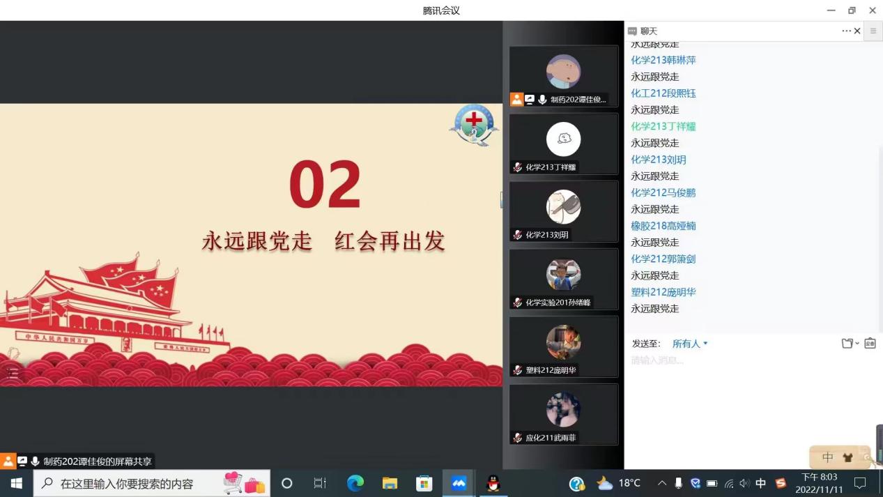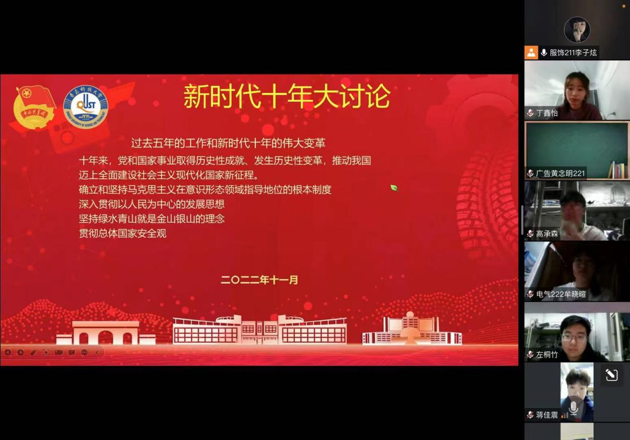 坚持善学善讲,开展宣传阐释。“我们要立志做有理想、敢担当、能吃苦、肯奋斗的新时代好青年,助力国家科技自立自强,实现科研报国梦。”化学爱好者协会临时团支部书记丁祥耀参加完学生社团“学习二十大 永远跟党走 奋进新征程”主题团日活动后感慨道。校团委社团管理部组织学生社团骨干宣讲团走进各学生社团临时团支部,宣讲党的二十大精神。他们中的成员有认真科研的全国大学生实验技能大赛一等奖获得者、综合素质突出的国家奖学金获得者、投身西部教育的学校研究生支教团成员。通过分享学习心得体悟,讲述将个人成长融入祖国发展、社会进步的奋斗故事,进一步坚定了青年学生听党话、跟党走的信心和决心。