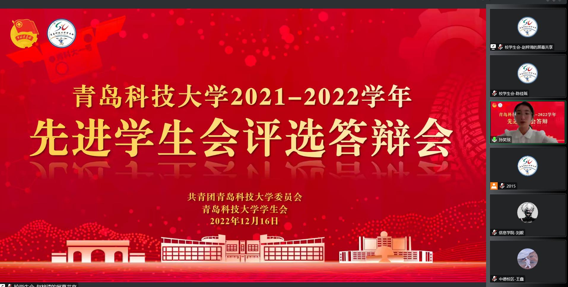 为深入推进团学组织改革,12月16日,学校2020-2021学年先进学生会、先进研究生会评选答辩会于线上举行。校团委副书记陈兵,校院两级学生会、研究生会指导老师,校院两级学生会、研究生会主席团成员参加此次答辩会。
