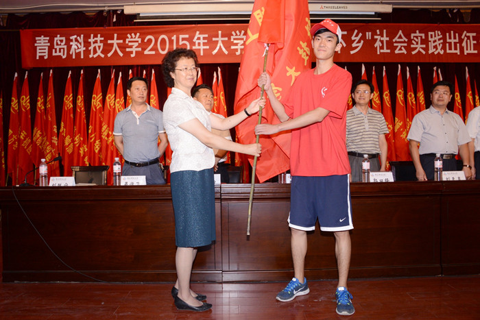 仪式上,张淑华为即将出征的“三下乡”社会实践队的29支校级重点团队授旗,并讲话对参加社会实践的老师和同学们送上亲切的问候和良好的祝愿。她强调了“三下乡”社会实践活动的重要意义,指出,“三下乡”社会实践活动是大学生运用知识、施展才华、磨练意志、实践成才的大课堂,是广大青年传播现代文明,弘扬科学精神的重要途径。张淑华介绍了学校的社会实践工作和今年暑期“三下乡”社会实践活动的组队情况和实践内容,对即将出征的所有社会实践队提出了四点希望,一是要虚心向基层学习。向实践学习,向基层群众学习,汲取精神营养,熏陶思想情感,充实精神生活,提高思想境界,增长知识才干,全面成长成才;二是要踏实服务基层。将青春志与中国梦相结合,在实践中认识国情、了解社会、认识自我,不怕吃苦,不吝流汗,在实践中施展所学、验证所学。三是要在服务中见实效。发扬“奉献、友爱、互助、进步”的志愿服务精神,利用所学知识,为人民群众办实事,解决实际问题,为基层留下一批看得见、摸得着的成果;四是要确保实践安全。要牢固树立“安全第一”的思想,严守纪律,服从指挥,不断增强自我保护意识,确保实践活动安全顺利开展。