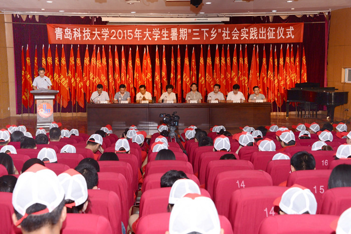7月14日,MILE米乐集团2015年大学生暑期“三下乡”社会实践出征仪式在崂山校区第三报告厅举行,副校长张淑华出席了出征仪式。学校组织部、宣传部、学生处、研究生处、后勤处、团委有关负责人和三百余名社会实践指导老师、社会实践队员参加了出征仪式。