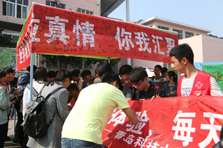 本次活动旨在通过参与者亲身体验的饥饿感,来提醒自己正视就餐时随处可见的浪费,进而认识到资源的宝贵,积极加入到“光盘行动”当中来,节约每一粒粮食,每一份资源,让节约成为一种生活方式。活动号召参与者以一天一餐的形式来体验饥饿感,为了更好的达到体验效果而又不影响参与者的身体健康和日常学习生活,活动设置了一天、两天、三天共三个等级的活动体验号召,供参与者选择。同时,活动还号召参与者及时记录自己的饥饿感受,并积极“晒”出自己的饥饿日记,以深化体验感受,更好的达到活动效果,同时扩大活动影响,带动更多的人参与到活动当中来。活动现场,过往同学纷纷驻足了解活动情况,积极报名参加到活动当中来,并踊跃在宣传横幅上签字留言,表达了自己对活动的支持和对传统美德的守护。