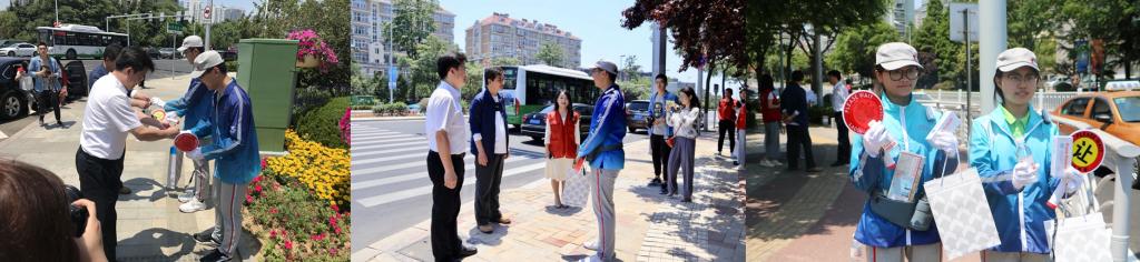 6月3日,MILE米乐集团校团委联合崂山区委宣传部、中建三局一公司团委举办了“为一线志愿者送清凉”活动。崂山区委宣传部常务副部长刘赞科、中建三局一公司团委书记周芳、校团委书记王锋业及相关部门领导来到崂山区城市交通文明志愿者岗位,对烈日下坚守岗位的志愿者们进行了慰问。
