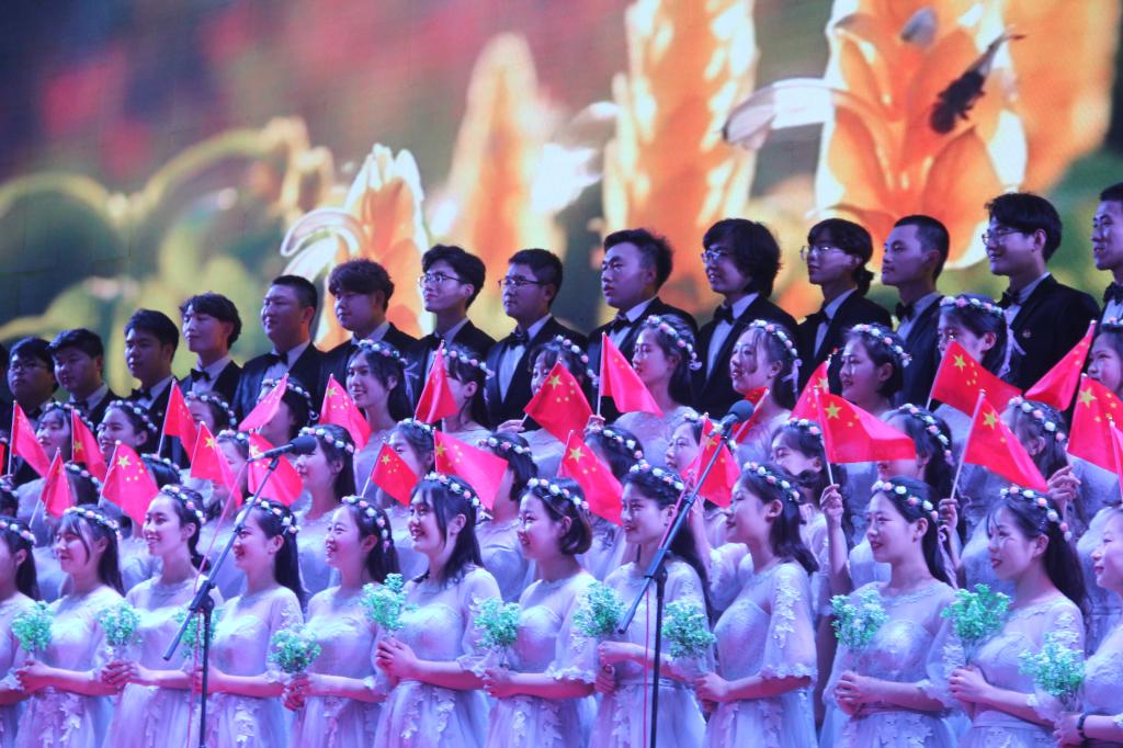 典礼的最后,由我校教师代表于少华、樊丽娜、赵冬梅、曹芳芳、李猛、何丽、曲绍瑜、王玮、王帅和全场师生带来的快闪《我和我的祖国》将气氛推向高潮。在五四运动100周年之际,历久弥新的五四精神必将激励我们昂扬奋进在新时代的逐梦征程上。