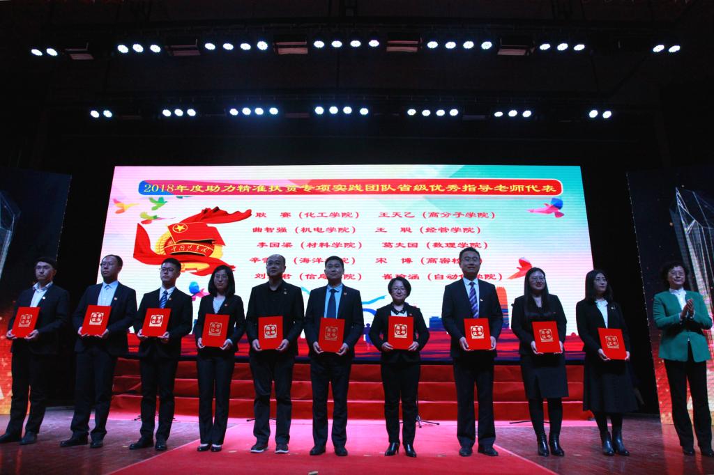 不忘初心跟党走,青春建功新时代。本届“榜样青春”颁奖典礼,对过去一年在思想引领、基层团建、创新创业、社会实践、志愿服务、校园文体活动等领域涌现出来的先进集体和个人进行了表彰,号召广大青年学子学习青年榜样,砥砺奋进担当。校党委副书记李庆领为2018年度红旗分团委标兵、红旗分团委、特色分团委、红旗团总支颁奖,副校长张淑华为2018年度助力精准扶贫专项实践团队省级优秀指导老师代表颁奖,副校长陈克正为学校第十三届十大优秀学生颁奖,副校长李勇为学校第十二届十大杰出青年颁奖,副校长吕万翔为2018年度国家级获奖代表颁奖。