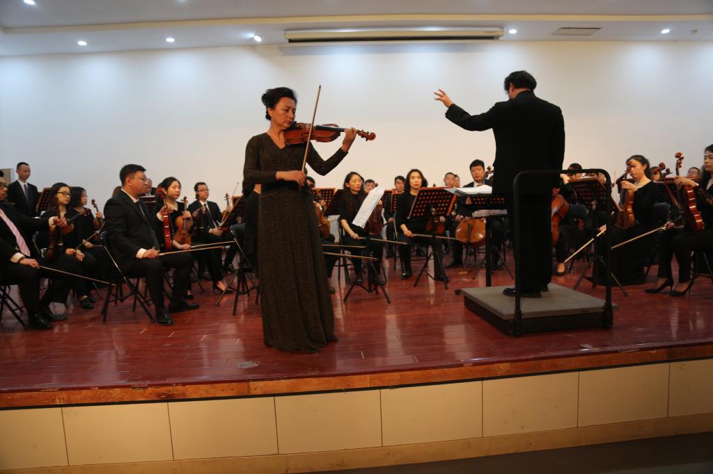 此次青岛交响乐团共演奏了《茉莉花》、《卡门序曲》等13首中外经典的交响乐作品。音乐会在《红旗颂》和《我爱你,中国》的雄伟激昂的旋律中拉开帷幕,我校青年教师刘伽、何丽、曹芳芳、李猛与青岛交响乐团联袂演出了竹笛独奏曲《走进快活岭》、《维瓦尔第双小提琴协奏曲》、男女二重唱《祖国,我为你干杯》,小提琴演奏家刘玉霞演奏了小提琴独奏曲《花儿为什么这样红》,音乐会在《康康舞曲》的欢快旋律中落下帷幕。