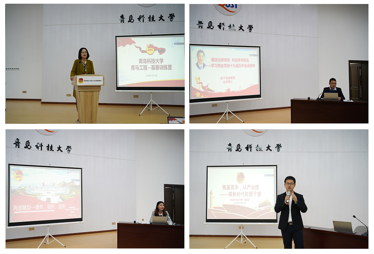 此次训练营涵盖专题报告、经验交流、实践锻炼、应知应会测试四部分内容。马克思主义学院副教授秦宁波作“铺定远景目标 共话青年担当——学习领会党的十九届五中全会精神”专题报告,化学院团委书记刘施施作“再造基层——青年,组织,团务”专题报告,信息学院团委书记曲智强作“强基固本,从严治团——做新时代的团干部”专题报告。