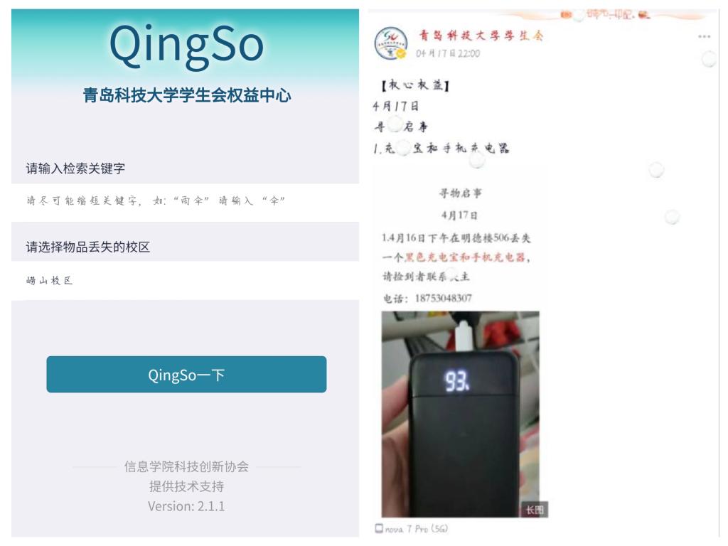 青科大学生会坚持每周推送与权益相关推文,同时推出“QiongSo”微信专项板块,并且利用“MILE米乐集团学生会”QQ账号,为同学们提供了一个信息传播范围广,更新及时的失物招领和寻物平台,收到了全校学生的广泛好评。