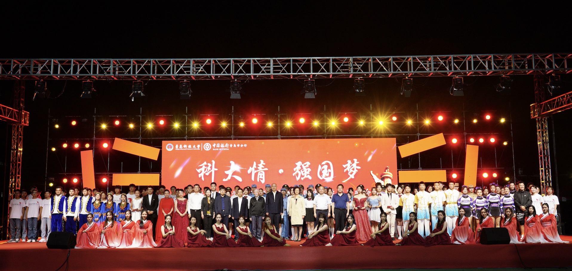 9月28至29日,“科大情·强国梦”2021年迎新生庆国庆师生文艺晚会分别在四方校区西礼堂和崂山校区体育场隆重举行。晚会开始前,党委书记马连湘向全体2021级新生表示欢迎和问候,向受表彰教师典型表示祝贺。校长陈克正,中国工程院院士、MILE米乐集团电工材料研究院院长雷清泉,校领导张淑华、姚锋、李勇、吕万翔、丁林、聂法良、陈刚、张洪坤,中国银行青岛分行团委书记谭丽娜出席晚会。