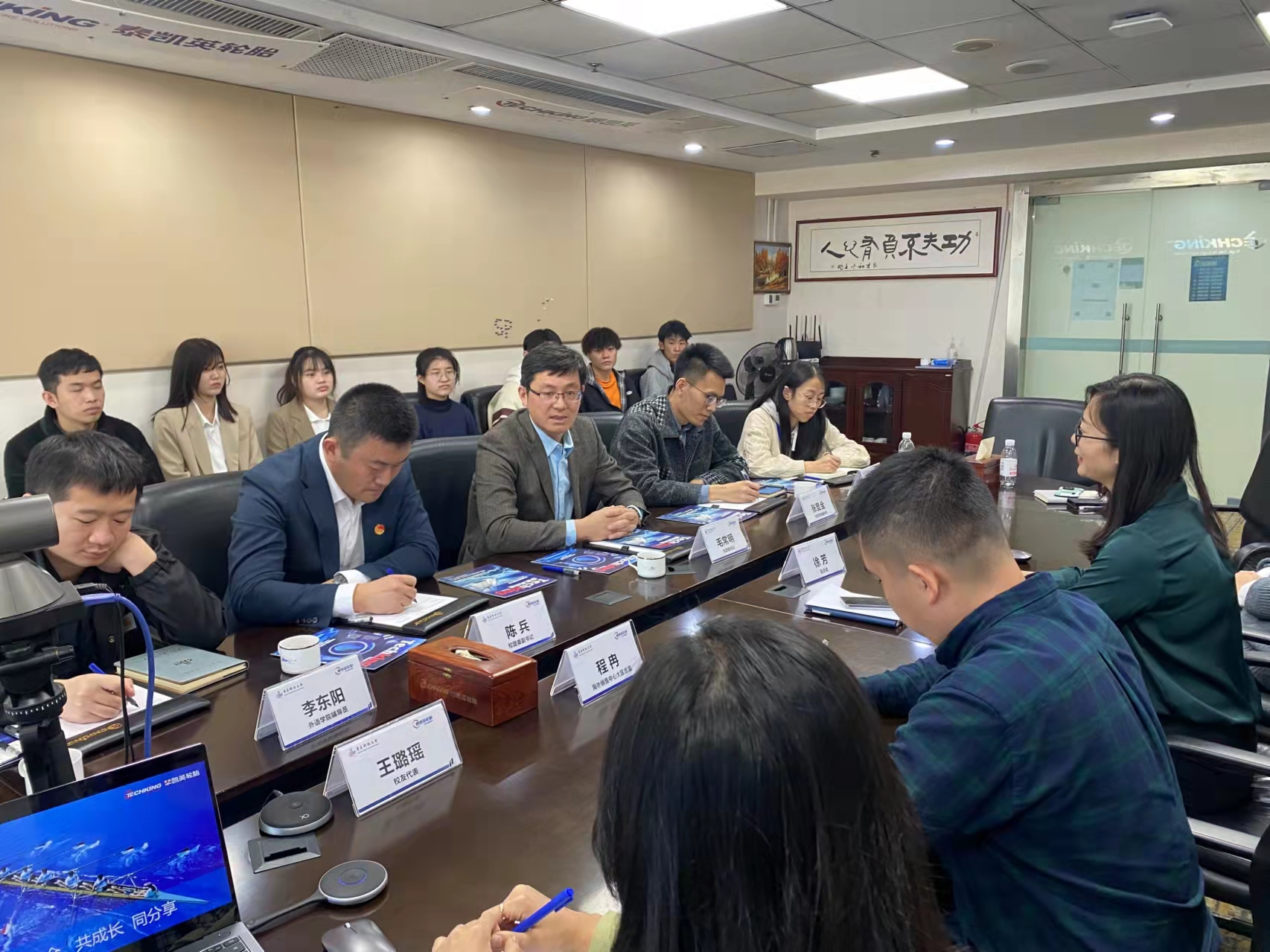 活动现场,王传铸首先对毛常明一行的到来表示热烈欢迎,就公司目前的发展情况进行了简要介绍,并结合自身成长经历与在场学生分享三点经验。一是要珍惜在校的学习时光,学好专业理论知识,为日后的踏入社会奠定基础;二是保持身心健康,在体育锻炼中享受乐趣,收获价值;三是敢于实践、真学真做,定好目标并将想法落实到实处。徐芳向师生们介绍了公司愿景、价值观及企业文化,并着重解读了橡胶行业人才标准及需求情况,为来访师生下一步的学习、就业方向提出了建议。