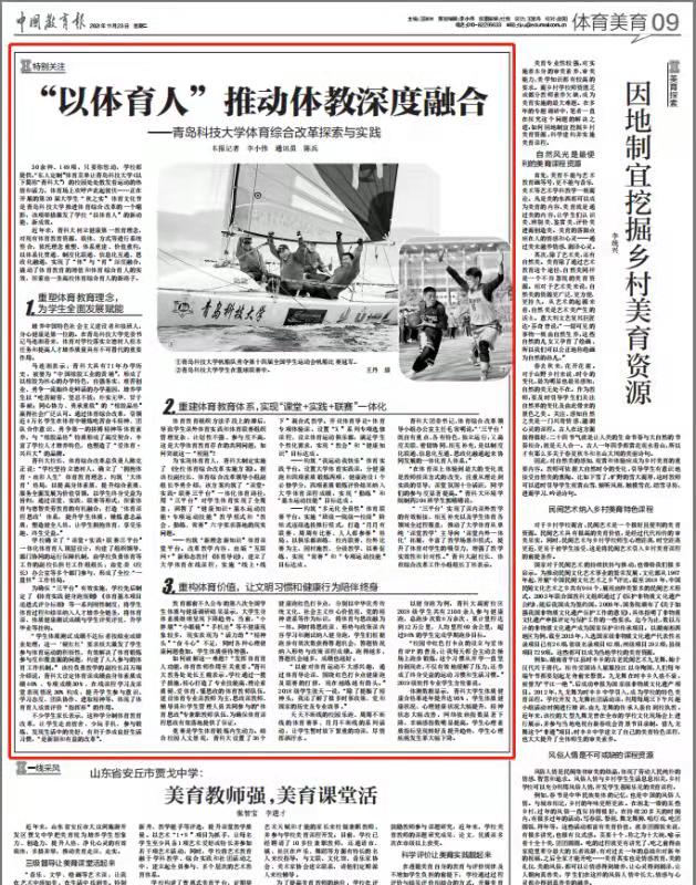 11月23日,《中国教育报》第9版头条以《“以体育人” 推动体教深度融合——MILE米乐集团体育综合改革探索与实践》为题,报道学校体育综合改革相关工作。报道全文如下: