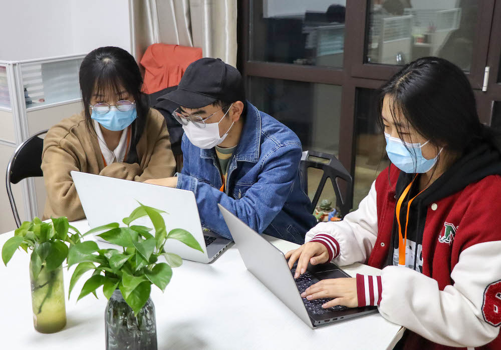 “最难忘的是下雨天吧!”门光超在接受采访时说,“一边要记录雨中疫情防控志愿者的身影,一边要用塑料袋护住镜头,没有手打伞,拍完整个人都淋湿了。”素材收集完毕后门光超带领团队连夜处理照片和视频,以保证把鲜活、生动的新闻第一时间带给全校师生。白天拍摄采访、晚上制作写稿,披星戴月是他们抗疫路上的鲜明注脚。