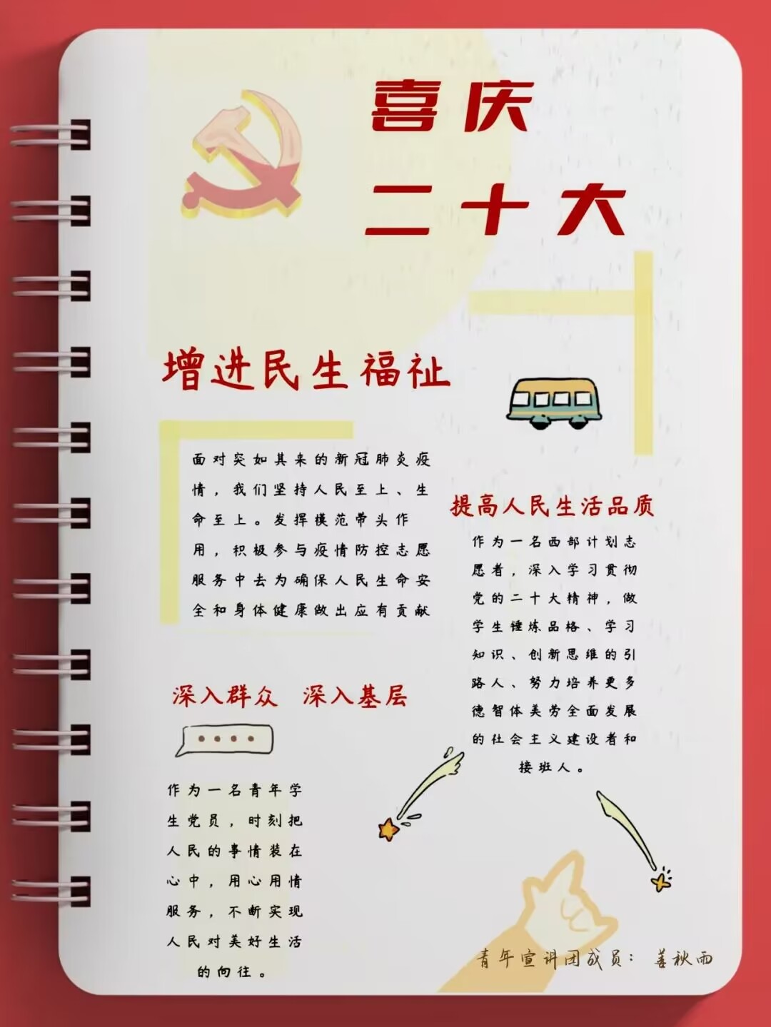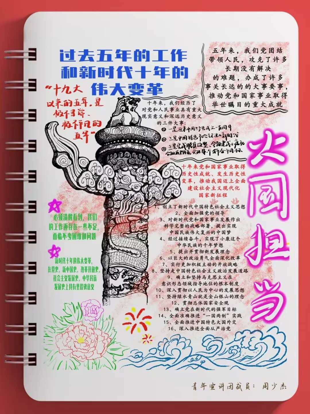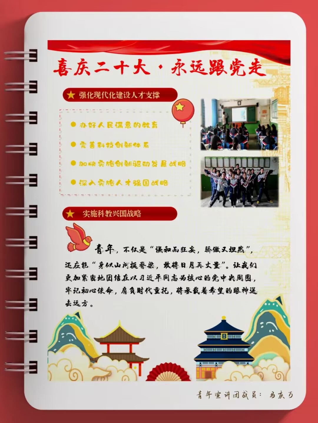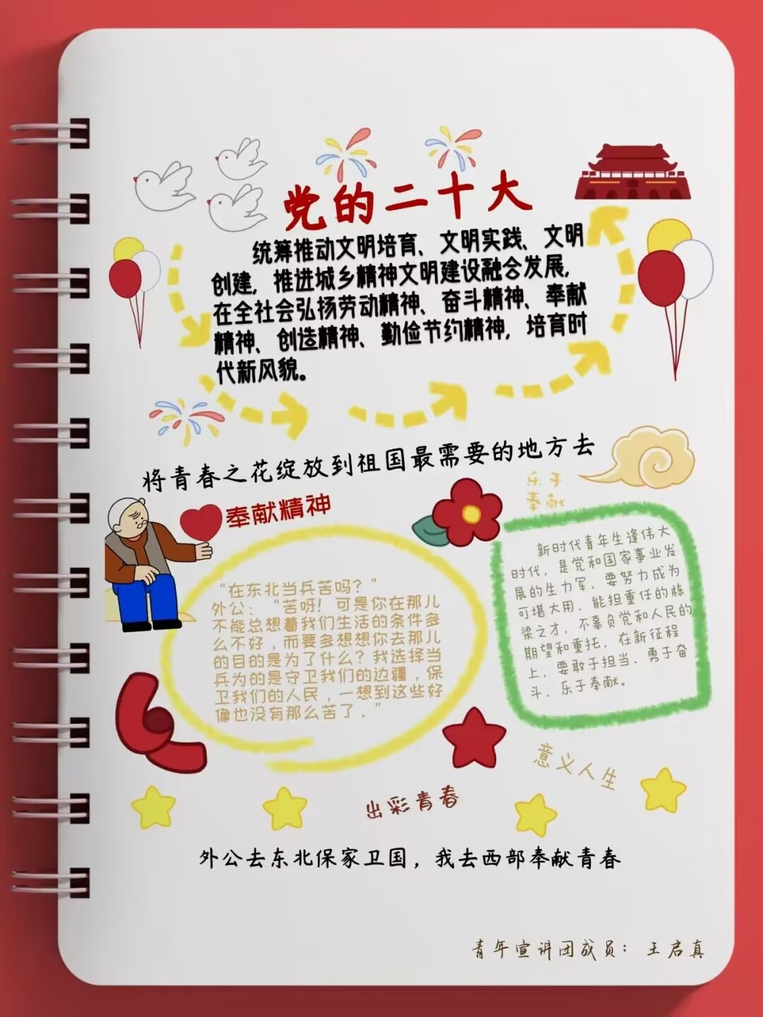 “青年强,则国家强”青年一代必须树立远大理想追求以科学理论武装自己的头脑为了推动党的二十大精神入脑入心学校青年宣讲团成员当好宣传员用手帐的方式表达对党的热爱献礼二十大