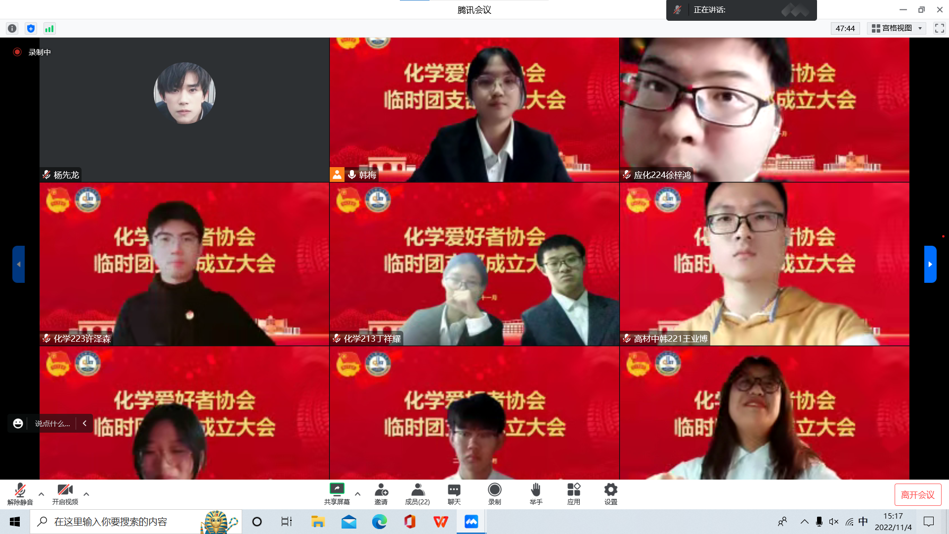 成立仪式结束后,各学生社团开展了“学习二十大 永远跟党走 奋进新征程”和“抗疫有我 时刻准备 青春有为”主题团日活动。化学爱好者协会临时团支部书记丁祥耀表示,临时团支部的成立加强了社团成员归属感和凝聚力,我们学生社团建设起了“想得起、找得到、靠得住”的坚强团组织战斗堡垒。