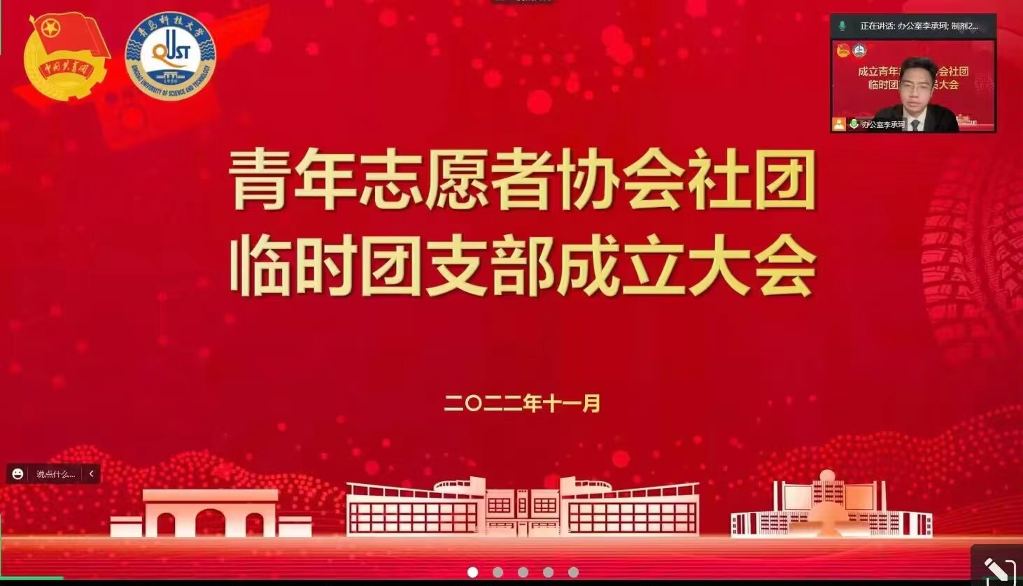 陈兵宣读了《关于同意成立学生社团临时团支部的批复》,他表示各学生社团应当以此次临时团支部成立为契机,坚定理想信念,凝聚青春力量,发挥好团支部的基层堡垒作用。当前全校上下正处在同心战疫的关键时刻,学生社团临时团支部更应主动担当,冲在一线,举办高品位、有特色、正能量的学生社团活动,为抗击疫情贡献社团力量。