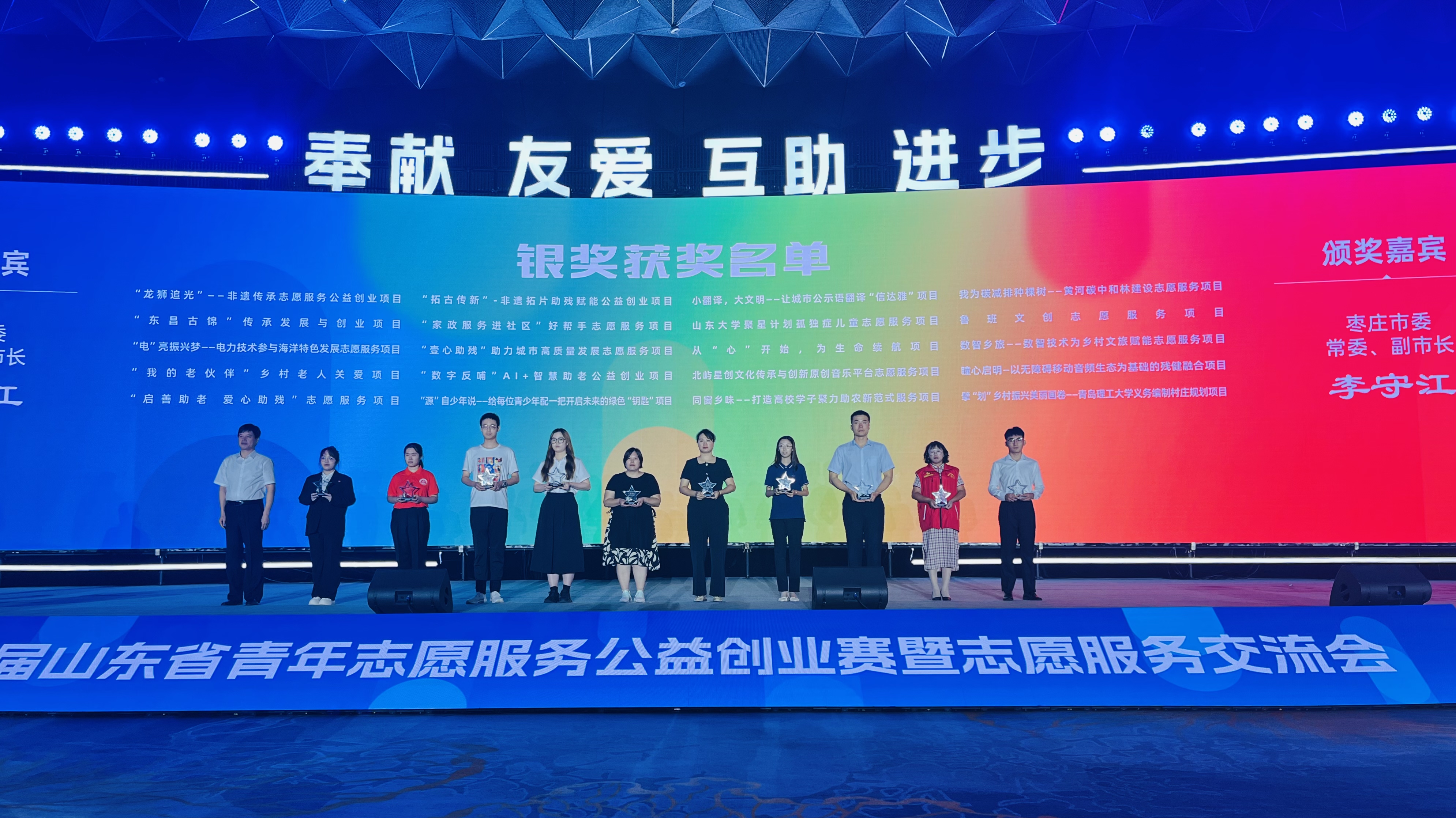 8月7日至9日,第二届山东省青年志愿服务公益创业赛暨志愿服务交流会在枣庄举行。我校首次组队参赛,最终“北屿星创文化传承与创新原创音乐平台志愿服务项目”(所属学院:经管学院,团队负责人:黄安琪,指导老师:付凯)斩获银奖。