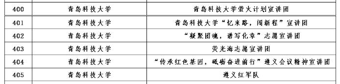 我校化学院萤火计划宣讲团、“忆来路,闯新程”宣讲团、“凝聚团魂,谱写化章”志愿宣讲团,海洋学院荧光海志愿宣讲团以及化工学院“传承红色基因,砥砺奋进前行”遵义会议精神宣讲团、遵义红军队6支团队成功入选由团中央青年志愿者行动指导中心、中共遵义市委、共青团贵州省委联合开展的2023年全国大学生遵义会议精神志愿宣讲团。
