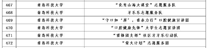 化学院“化育山海大课堂”志愿服务队、牙乐乐志愿服务队、“萤火计划”志愿服务团、“守口如‘屏’,青春力行”口腔健康宣传团,化工学院“口腔健康先锋”大学生志愿宣讲团以及数理学院“雷锋团支部”社区牙牙乐行动队6支团队成功入选由团中央青年志愿者行动指导中心、国家卫生健康委医疗应急司联合开展的2023年全国大学生口腔健康志愿宣讲团。