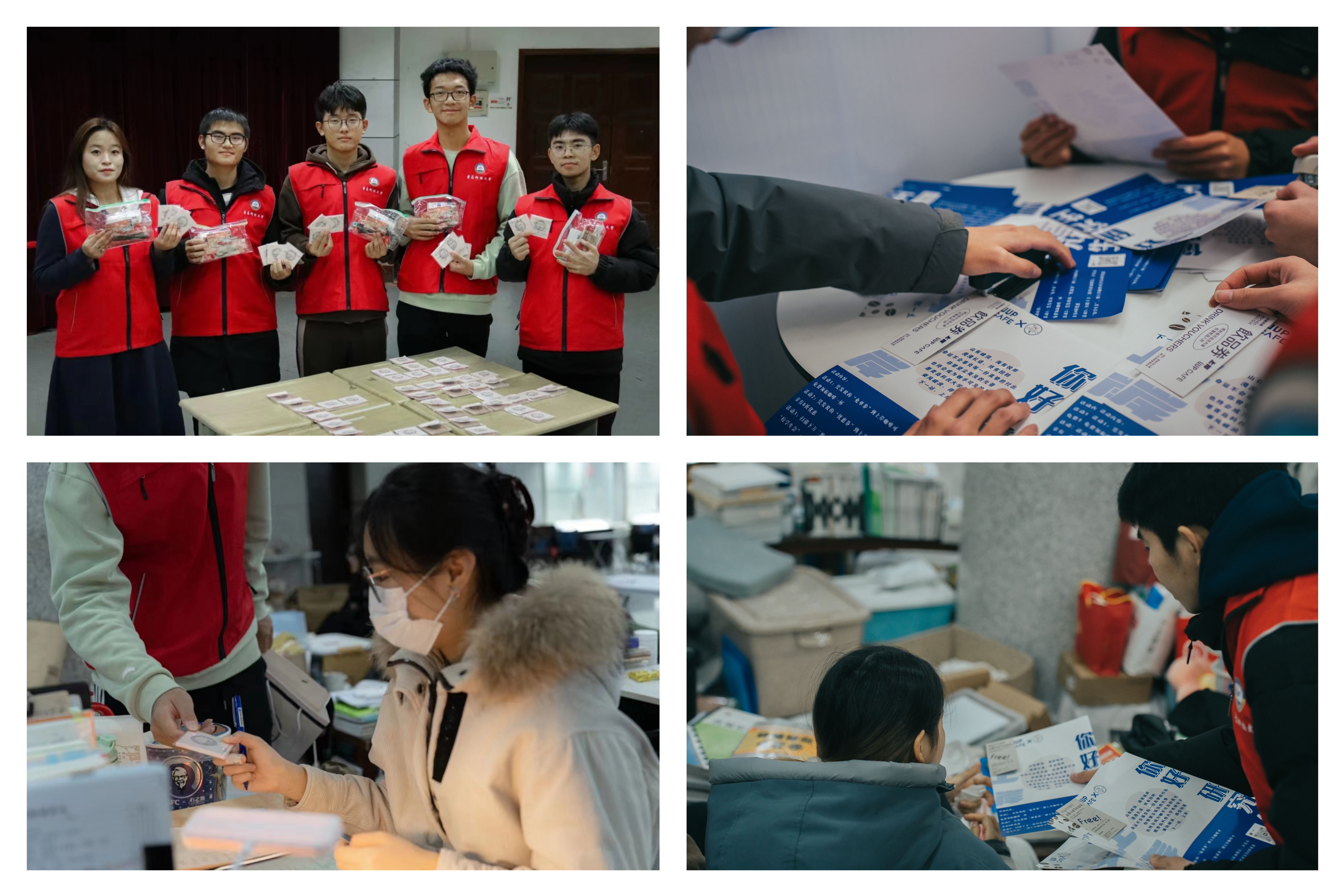 为减缓考研学子备考压力,提高学习效率,增强考研学子备考信心,校学生会多次组织志愿者开展“我为同学送温暖”活动。志愿者们在图书馆、教学楼等地为备战的考研学生送去文具套装、学习资料提包、便利贴、咖啡优惠券及手写祝福等,送上最真挚的美好祝福。