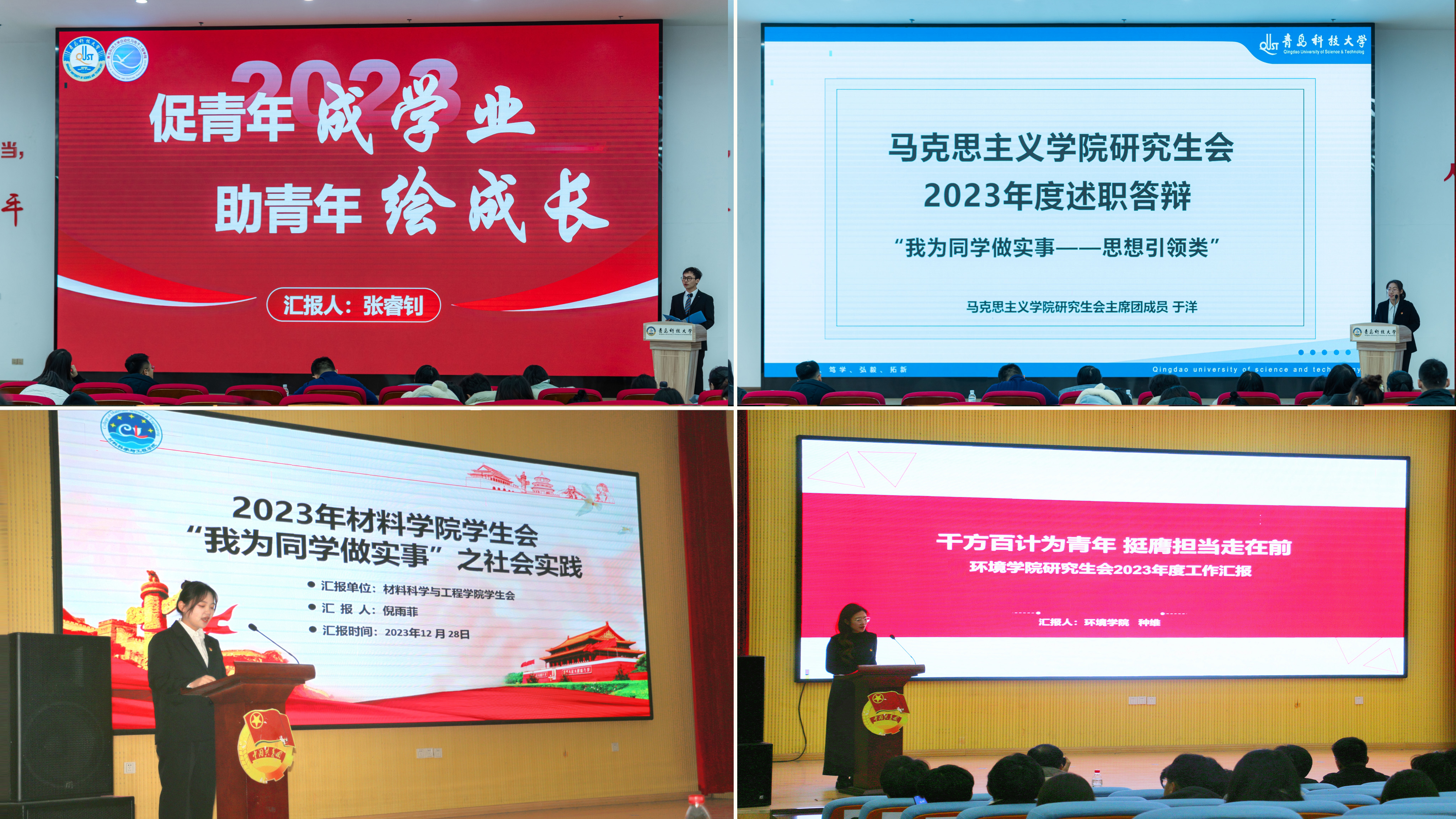 12月28日,学校2023年学生会组织“我为同学做实事”工作汇报会暨先进学生会、研究生会评比答辩会于崂山校区北区团学报告厅、四方校区尚舜报告厅顺利举行。