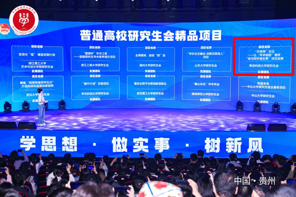 本次交流展示活动,经学校自荐、省级推报、全国遴选,共有300个项目获评“全国高校学生会组织‘我为同学做实事’优秀项目”,我校研究生会“求思得”论坛--以学术助研擦亮“我为同学做实事”项目成功入选并入围现场交流展示环节。最终,经过层层筛选、现场答辩,我校研究生会“求思得”论坛--以学术助研擦亮“我为同学做实事”项目从全国1724所高校的3581个项目中脱颖而出,荣获精品项目。