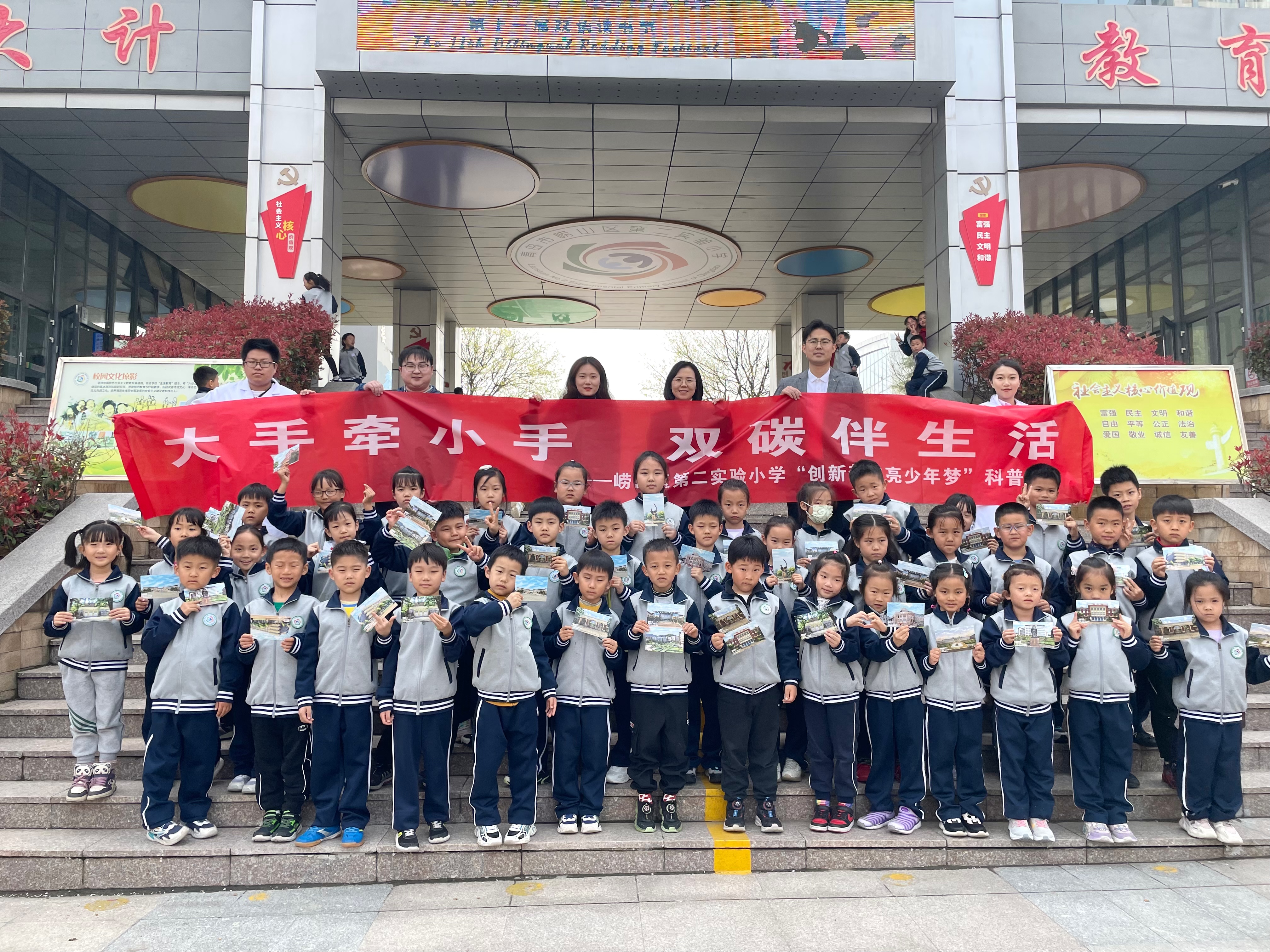 为深入学习贯彻党的二十大精神和习近平总书记关于青年工作的重要思想,纪念五四运动105周年,弘扬“爱国、进步、民主、科学”五四精神,进一步提高青少年科学文化素养、激发生态环境保护意识,4月15日,学校化学爱好者协会前往崂山区第二实验小学举办“大手牵小手 双碳伴生活——创新梦点亮少年梦”科普活动。