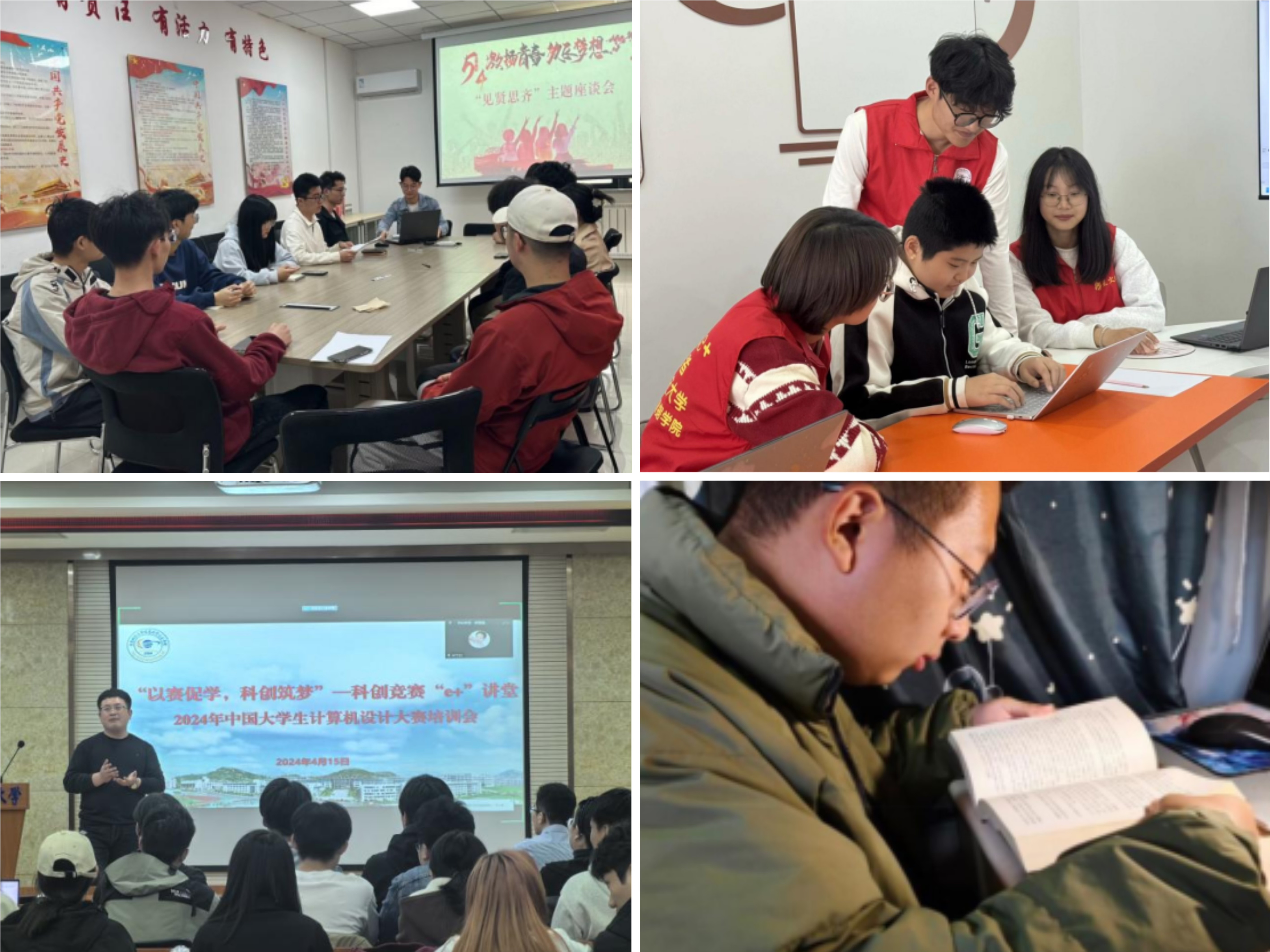 信息学院团委多形式开展五四青年节系列活动,举办“见贤思齐,奋楫笃行”五四青年节主题团日活动,分享青春故事,发挥榜样作用;组织“星火e+”志愿服务团队与盛世悦府社区打造“信心相连”社区共建项目,助力青少年科学思维养成;举办科创竞赛“e+”讲堂暨计算机设计大赛培训会,提升青年学生科创思维和创新意识;开展读书之星评选活动,引导团员青年在学原文、读原著、悟原理中坚定理想信念。