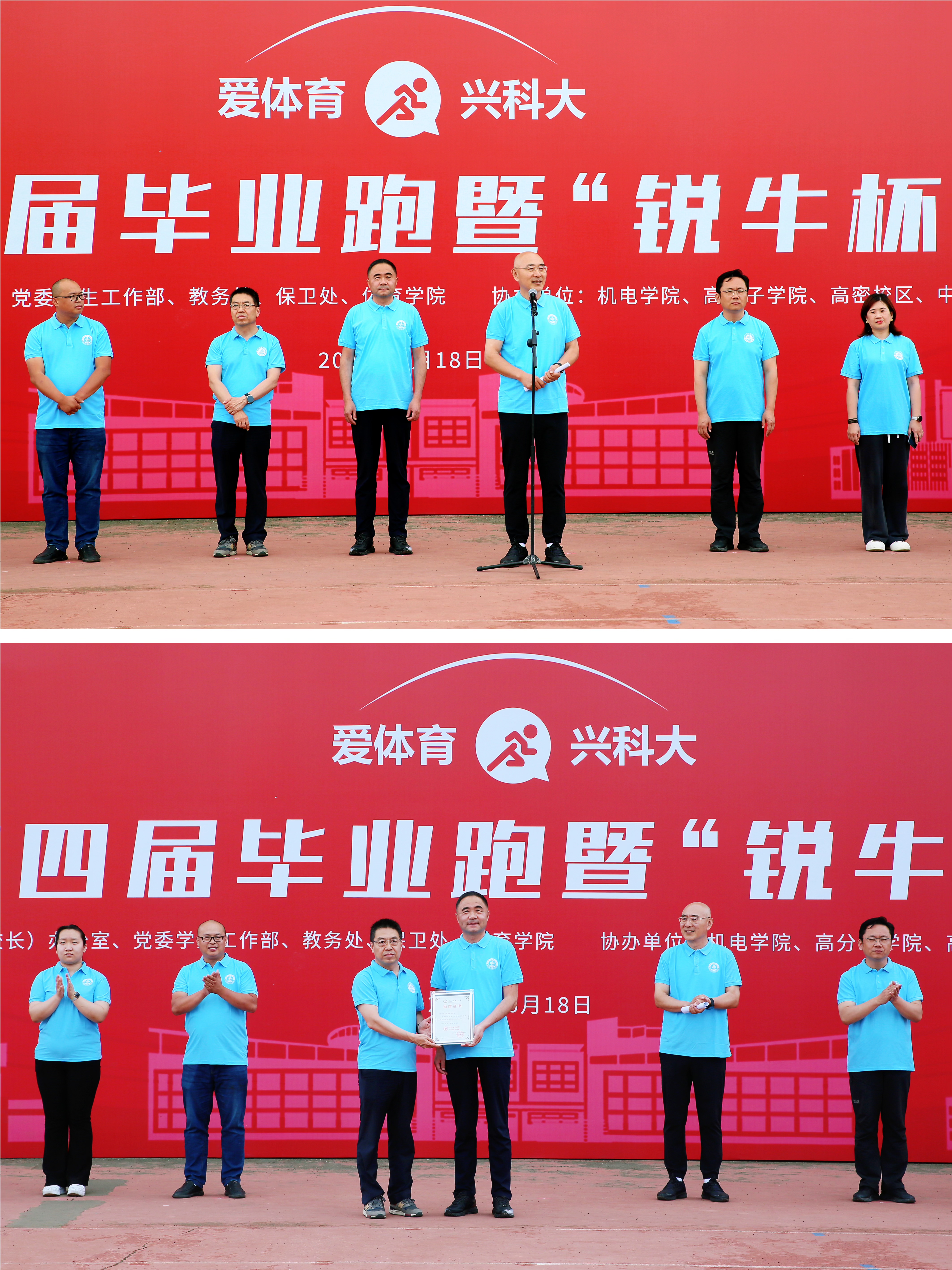 与会嘉宾共同为毕业跑运动员发放物资礼包;锐牛股份有限公司董事长、我校1991级校友朱树生致辞并向学校捐赠教育发展基金;学校党委常委、副校长吕万翔代表学校接受捐赠并回赠捐赠证书;学校党委常委、副校长丁林为毕业生送上祝福;参加活动的毕业生代表发言,表达了对母校辛勤培育的感激之情以及对学校体育综合改革的充分认可。