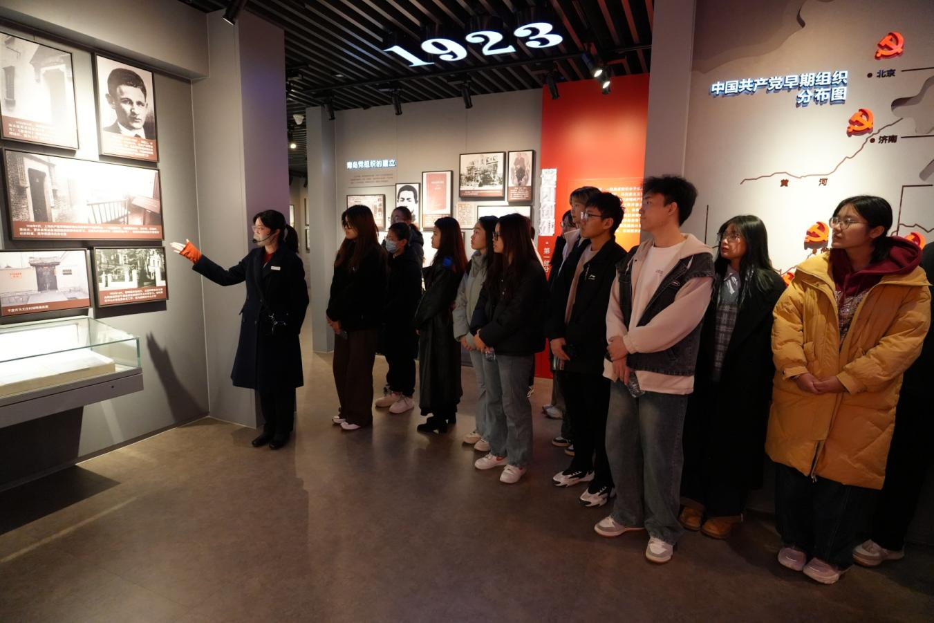 12月1日,“青马工程”领雁训练营全体成员前往青岛中共党史纪念馆进行实践研学。领雁训练营班长王雨晴以“鸿雁逐红色曙光 青年扬奋斗之志”为题进行了主题团课宣讲。随后,学员们在讲解员的带领下回顾了青岛党组织一路走来的艰辛历程和所创造的辉煌成就。他们纷纷表示,要以革命先辈的光辉事迹为镜,夯实信仰之基,强化历史自信,坚定不移听党话、跟党走,争做新时代好青年。