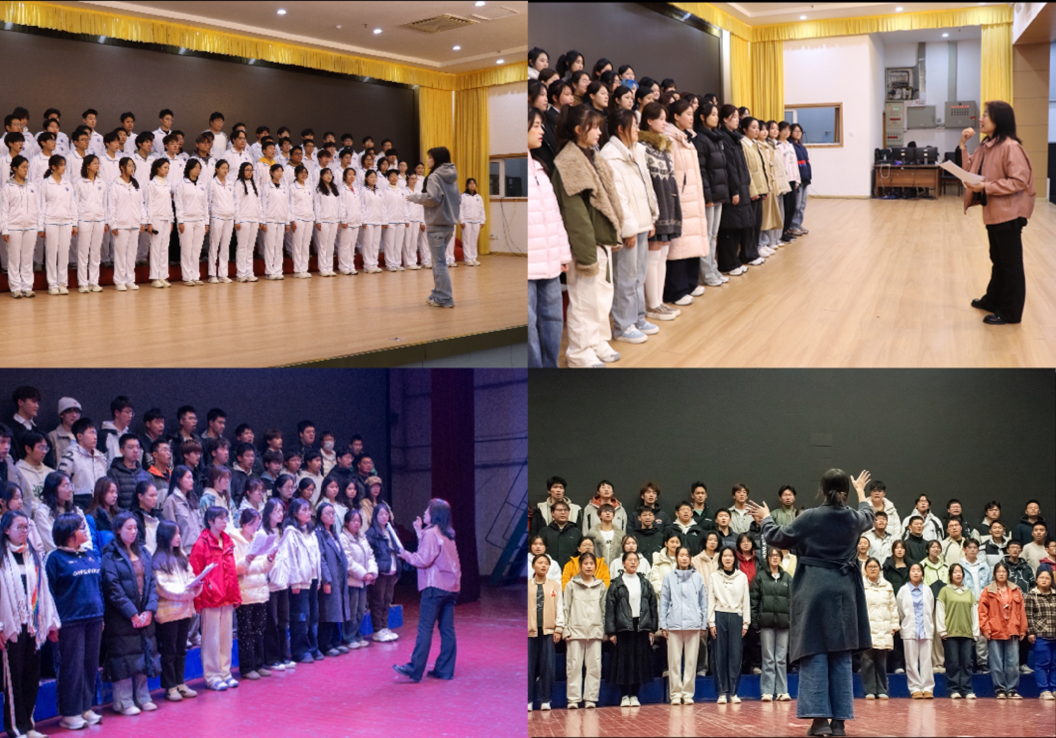 专家通过分段排练、声部对位训练等方式,修正各学院合唱团音准偏差与节奏错位问题,构建层次分明、和谐统一的音响效果,帮助学生突破音域限制,以自信昂扬的姿态展现新时代青年的精神风貌,让歌声与情感同频共振,传递奋进新征程的坚定信念。