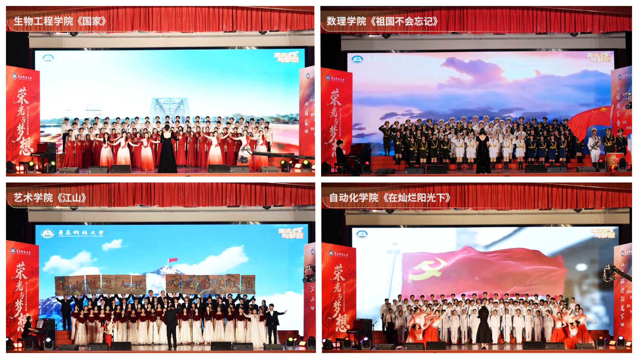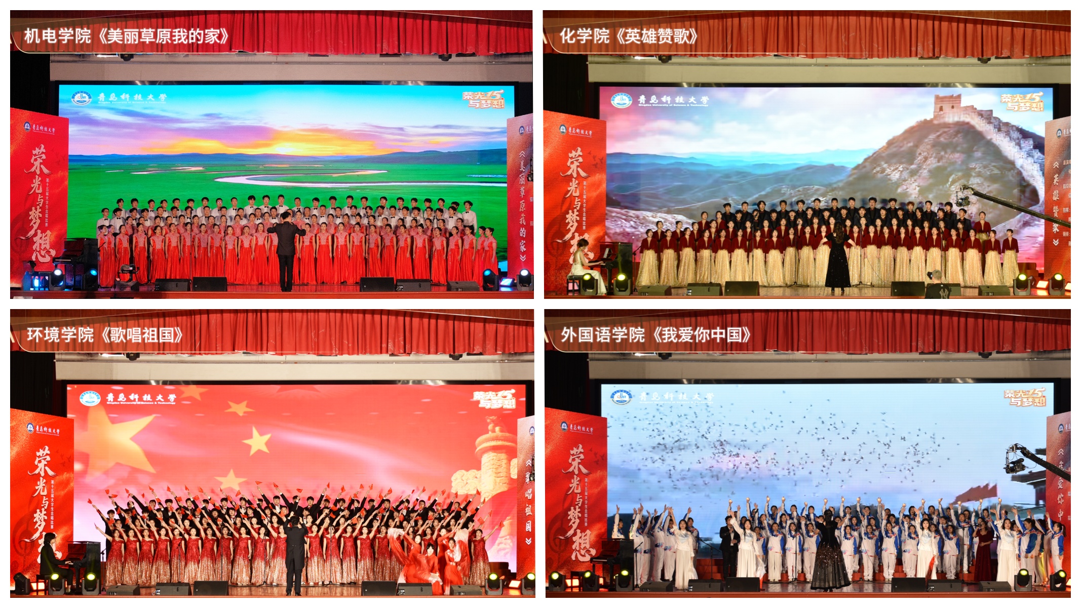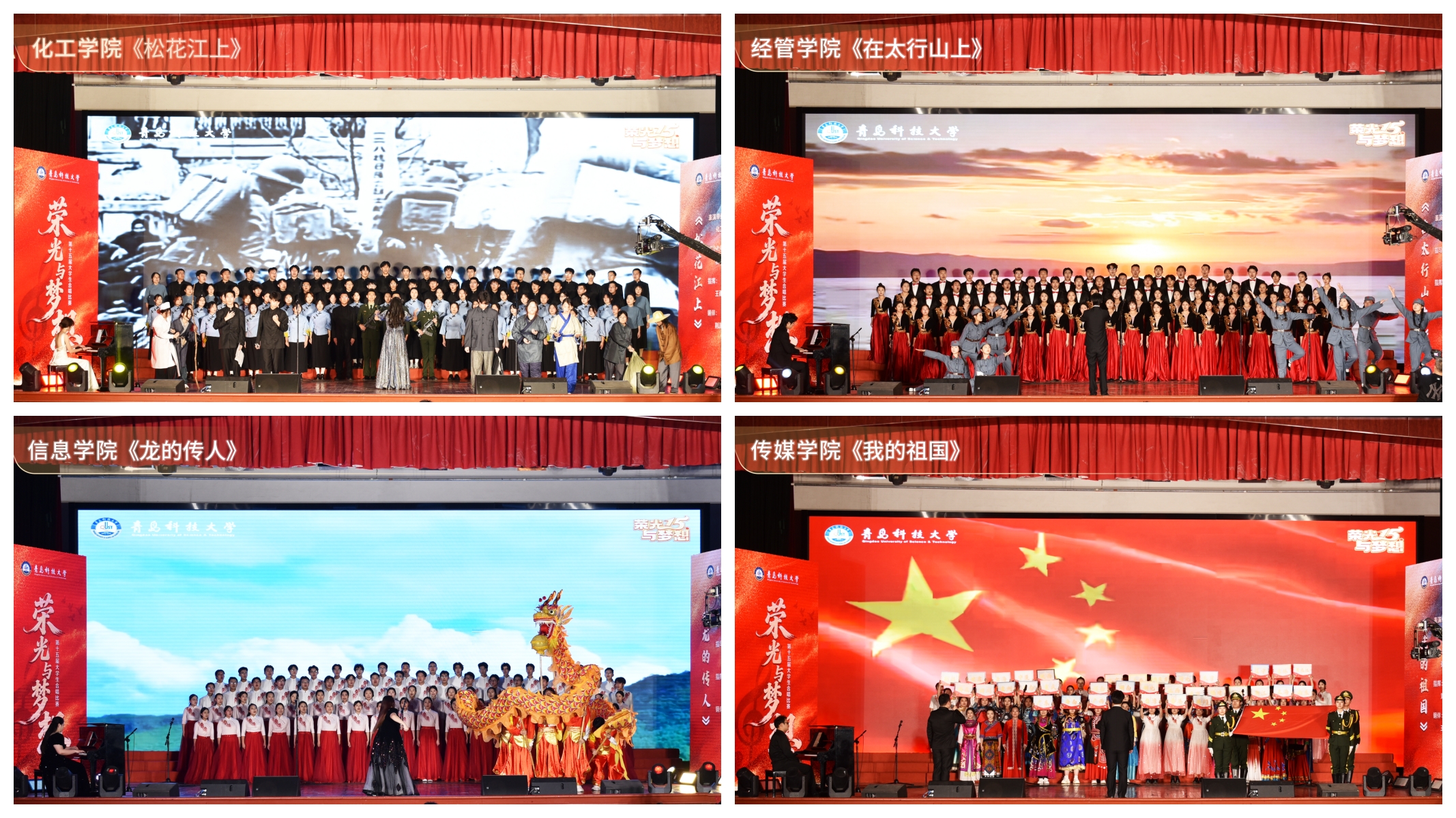 比赛现场,各队伍通过演唱《黄水谣》《强军战歌》《保卫黄河》《十送红军》《松花江上》《在太行山上》等曲目,聚焦新民主主义革命时期,用歌声再现民族危亡时刻的抗争精神与军民同心的深厚情谊。通过演唱《龙的传人》《我的祖国》《美丽草原我的家》《英雄赞歌》《歌唱祖国》等曲目,深情礼赞社会主义建设时期全国人民投身建设、奋发向上的精神风貌。通过演唱《我爱你,中国》《国家》《祖国不会忘记》《江山》《在灿烂阳光下》等曲目,展现改革开放和社会主义现代化建设时期的辉煌成就与奋斗者的奉献情怀。通过演唱《夜空中最亮的星》《万疆》《天路》《光亮》《灯火里的中国》等曲目,抒发立足中国特色社会主义新时代,青年学子投身强国建设、民族复兴伟业的坚定信念。最后,各学院合唱代表共同唱响校歌《青春校园》,用整齐嘹亮的歌声唱响爱校荣校主旋律,呈现出一堂“有魂、有料、有彩”的青春盛宴。