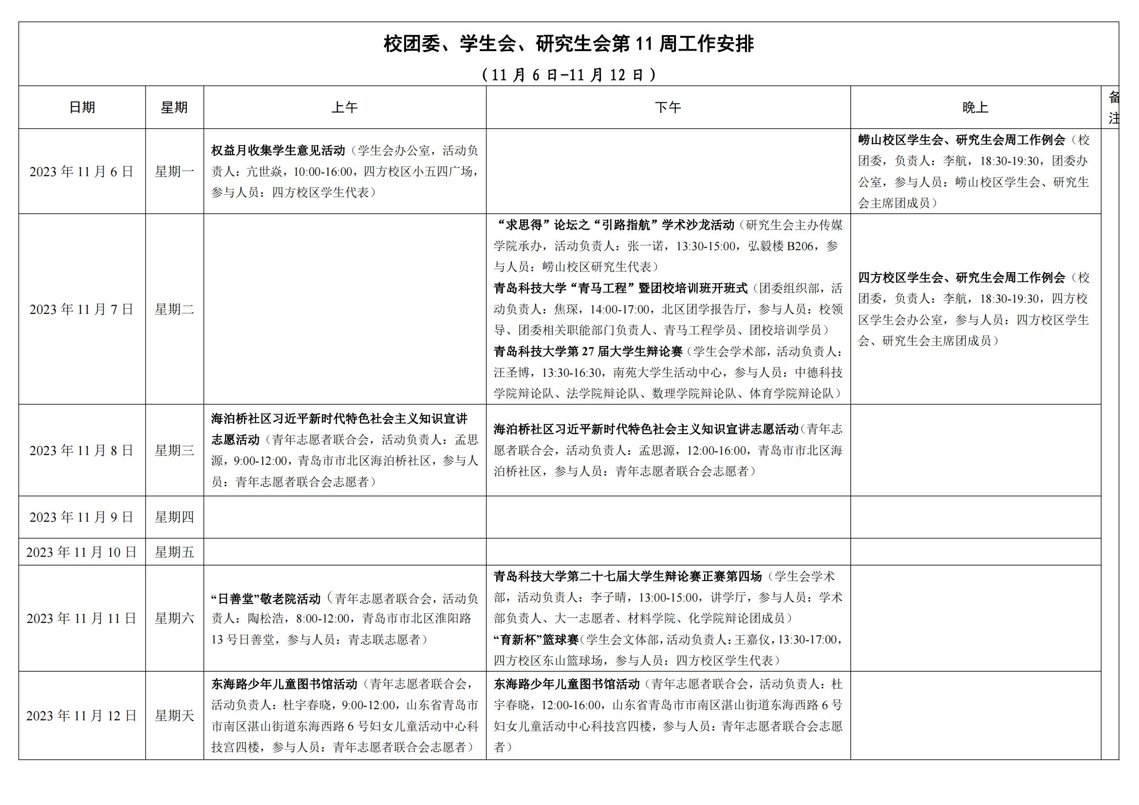 校团委、学生会、研究生会第11周工作安排