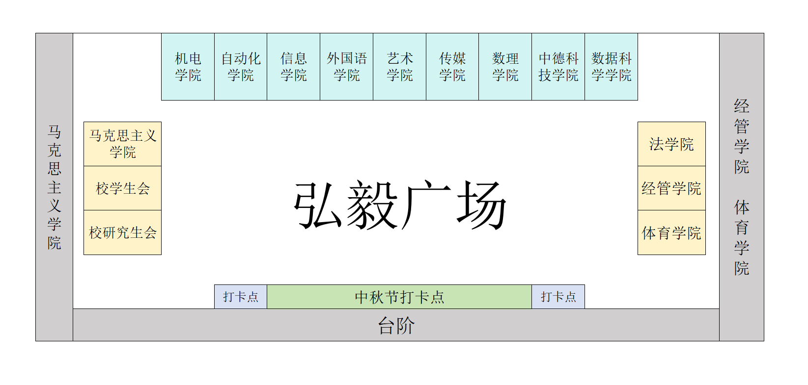 各学院分别在指定地点自行布置主题活动区,结合学院特色开展中秋主题活动。