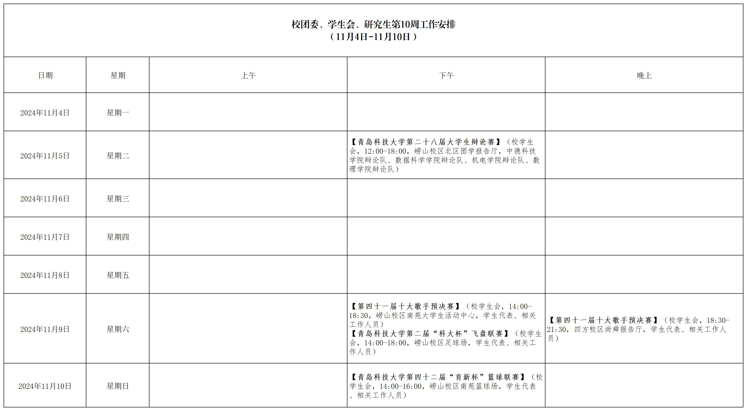 校团委、学生会、研究生会第10周工作安排