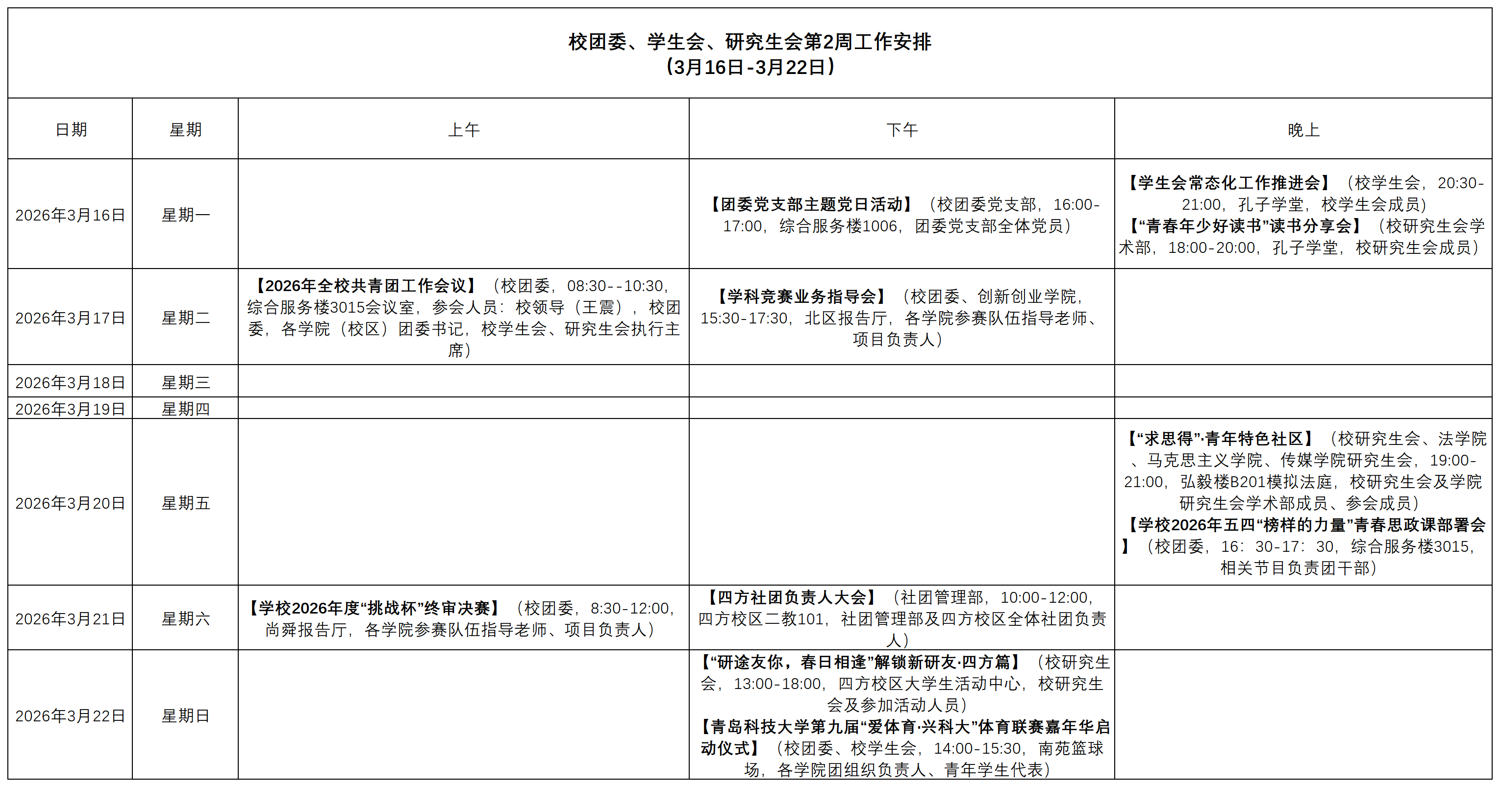 作者:校团委、学生会、研究生会   审核: 李浩    来源: 校团委、学生会、研究生会    编辑:王丹     时间: 2026-03-17    点击数:
