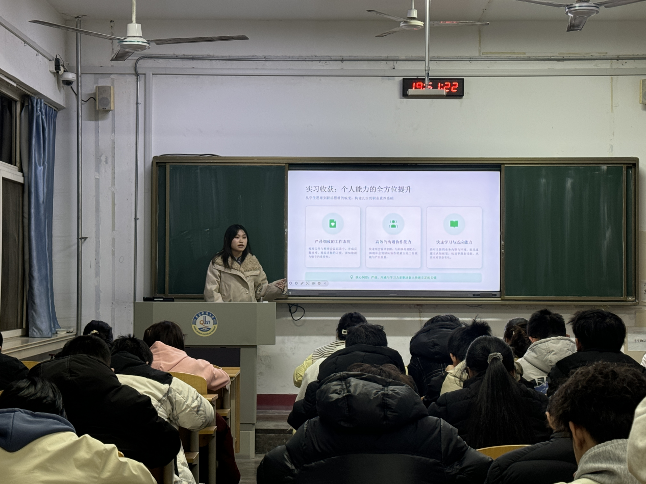 分享会上,学院寒假社会实践优秀青年学生代表依次上台发言。大家结合自身真实经历,分别围绕社区志愿服务、企业走访调研、助力乡村振兴、弘扬传统文化等多个主题展开分享。从深入基层开展便民服务,到走进企业了解行业发展动态;从投身乡村建设助力产业发展,到挖掘本土文化讲好时代故事,同学们用朴实的语言讲述实践过程中的所见所闻、所思所悟,既有直面问题的思考,也有服务他人的温暖,内容鲜活生动、兼具温度与深度,充分展现出生物工程学院青年学子扎根基层、知行合一、勇于担当的良好精神风貌。