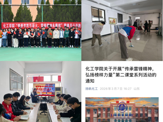 三月春风暖校园,雷锋精神代代传。化工学院团委以“践行雷锋精神,彰显青春担当”为主题,开展系列志愿服务活动,引导青年学子在实践中传承雷锋精神。