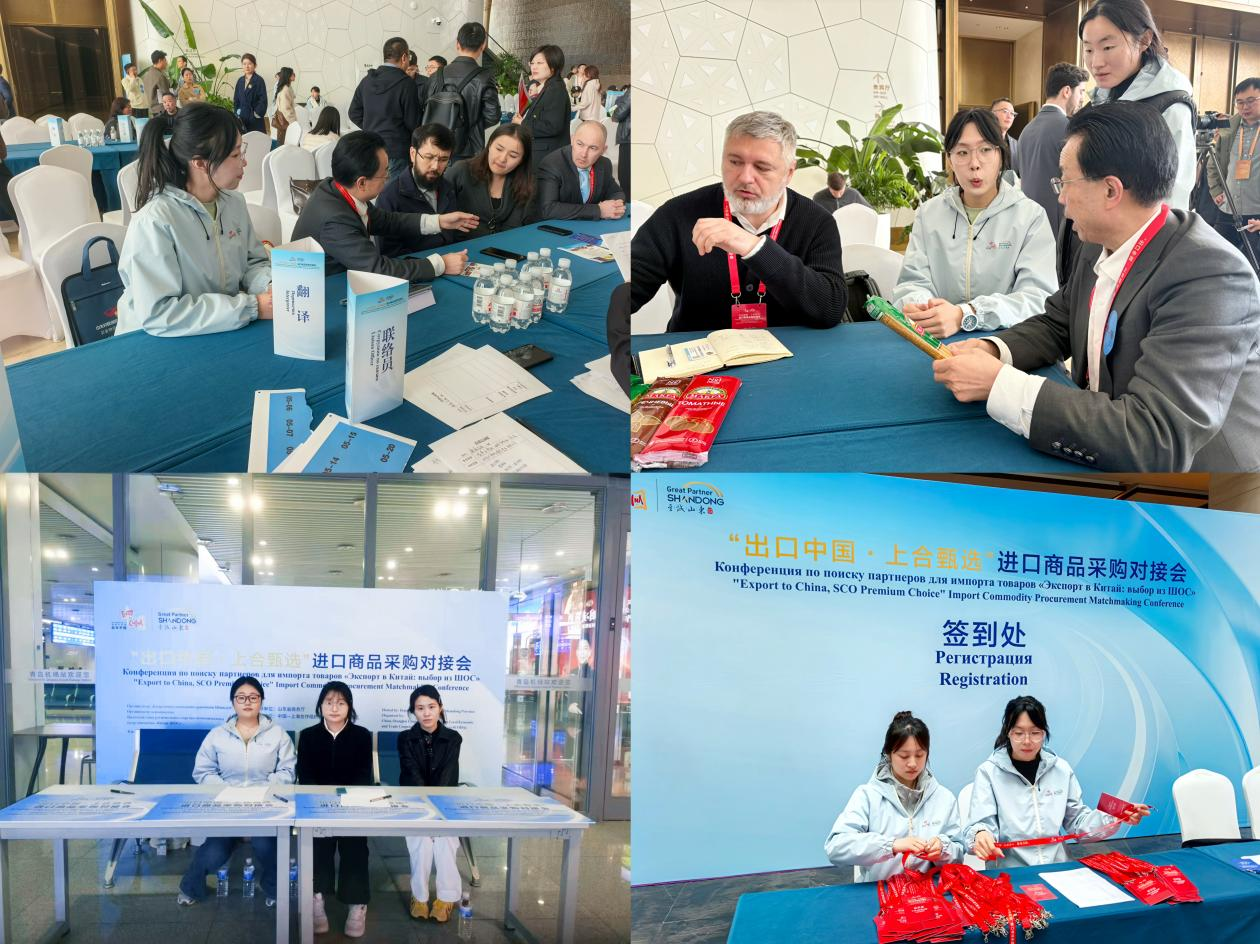 3月30日,“出口中国・上合甄选”中国(山东)—上合组织国家进口商品采购对接会在青岛・上合之珠国际博览中心开幕。本次活动由山东省商务厅主办,聚焦上合组织国家经贸合作,搭建起山东与上合组织国家地方政府、企业间的精准对接平台,推动进口贸易扩容提质与地方经贸合作走深走实。学院团委充分发挥学科优势和青年力量,精准选派“小语滴”志愿服务团中的26名俄语志愿者和7名英语志愿者奔赴会展一线。志愿者以扎实的语言功底、饱满的服务热情和严谨的工作态度,活跃在多个关键点位、承担多项服务职责,为活动顺利开展提供坚实语言保障,赢得了与会各方的高度评价。
