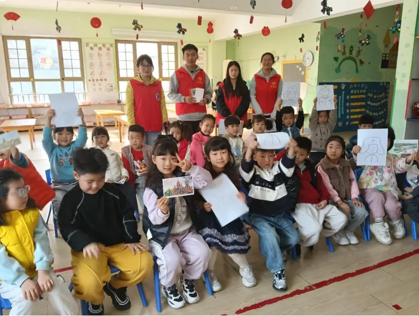 为深化活动效果,温心怡与赵佳欣设计情景模拟互动环节。志愿者们结合生活场景,示范礼让、分享、助人等文明行为,孩子们积极参与,踊跃分享自身助人经历,在沉浸式体验中理解雷锋精神内涵。互动环节气氛热烈,志愿者为表现优异的小朋友颁发雷锋画像,向全体幼儿赠送明信片,鼓励大家以雷锋为榜样。