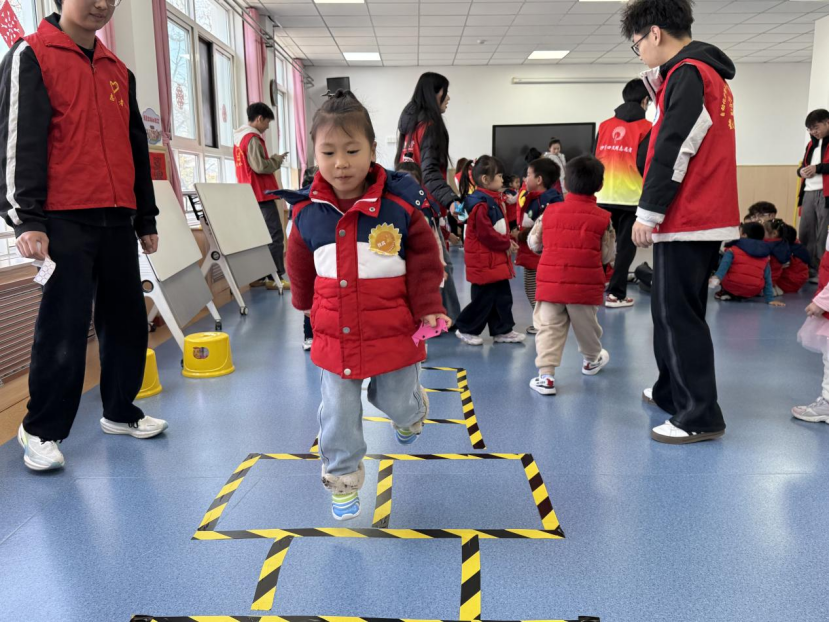 随后,传统游戏互动环节正式开启,志愿者们将雷锋精神中的互助、勇敢、文明、协作内核,巧妙融入摔元宝、跳房子等多款经典民间游戏中。孩子们踊跃参与、大胆尝试,在游戏中学会文明礼让、坚持挑战,体会团结友爱、互帮互助的意义,在趣味体验中让雷锋精神的种子悄悄扎根心底。整个活动现场笑声不断、暖意融融,志愿者全程贴心陪伴、耐心引导,让孩子们在玩乐中感悟雷锋精神,在互动中感受传统游戏的乐趣。