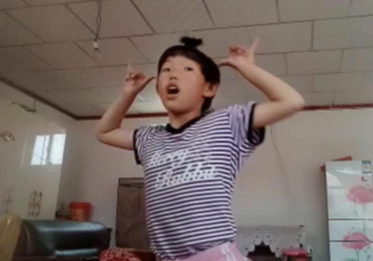 图为爱心小院孩子在联欢会上表演舞蹈