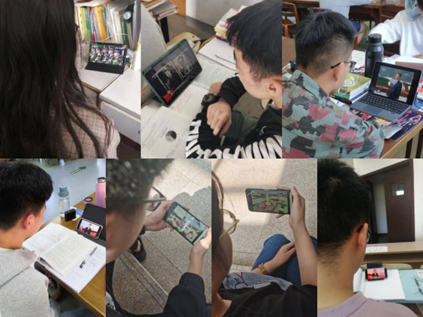 机电工程学院组织部分学生党员通过中央广播电视总台等中央重点新闻网站和人民日报客户端、新华社客户端、央视新闻客户端等新媒体平台观看直播。