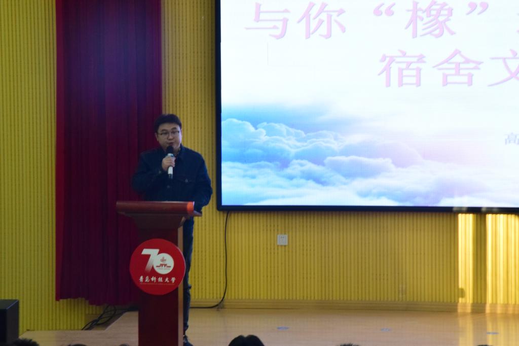 崔伟在开幕式上致辞,并宣布高分子学院“与你‘橡’遇,一‘室’温情”宿舍文化节正式启动。他指出,本次宿舍文化节的举办旨在培养大学生热爱生活,积极乐观,健康“橡尚”的精神风貌,共创优美整洁的宿舍环境,共建和谐奋发的宿舍氛围。