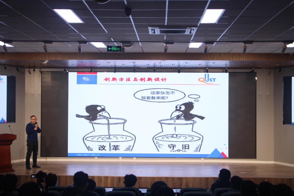 此次讲座以围绕TRIZ创新方法为主题,卜秋祥老师以家喻户晓的“乌鸦喝水”的故事为喻,讲解了创新思维和传统思维的不同以及创新方法的重要性,创新方法源于经典,却远超于经典。同时卜老师号召同学们为锻炼TRIZ创新方法,必须落实“保持空杯心态”、"项目驱动式学习"、"保持专注,厚积薄发"、"以赛促练,以练促学"的学习方法。随后谷伟长同学分享了自己的参赛经验,备赛的过程中会遇到很多挫折、困难,要保持求真务实、埋头苦干的态度才是成功的关键,比赛最重要的是扎实去做,认真去做,突破传统,并鼓励同学们认真备战明年比赛。至此,活动在同学们热烈的掌声中圆满结束。
