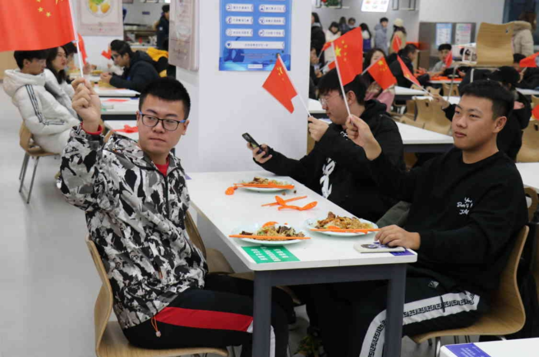 教室里、食堂上,大家一起挥动着手中的国旗,加入到了歌唱伟大祖国的行列之中。洪亮的歌唱了《国家》《我爱你,中国》等歌曲,他们用自己青春的声音,歌颂一二·九运动,歌颂祖国,歌颂新时代,抒发新时代青年人的爱国情、报国志和强国心。