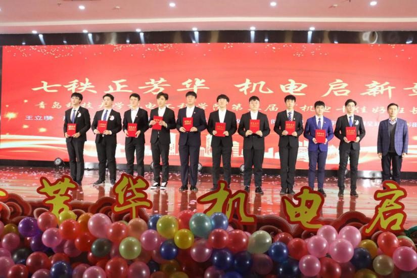 典礼表彰了机电学子在学风建设、科技创新、志愿服务等方面取得的傲人成绩;肖强和王作辉分别为机电学院“十佳好班长”和“十佳团支书”获得者颁奖,并鼓励学生坚定理想信念,不断开拓创新。