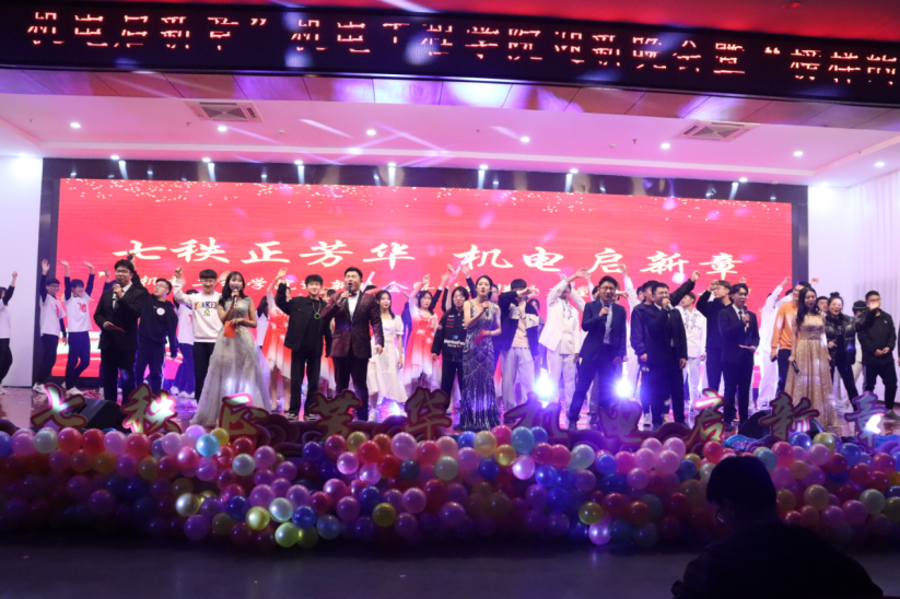 一组优美的歌曲凭借歌手动人的歌喉,展现了当届机电学子的风采,引人入胜;相声《谁是主角》令人捧腹大笑,掌声络绎不绝;更有精彩的《五行同生》武术表演、主席团的“神秘节目”、一段段舞蹈串烧等精彩纷呈、环环相扣、扣人心弦;最后,晚会在大合唱《相亲相爱》中落下帷幕。
