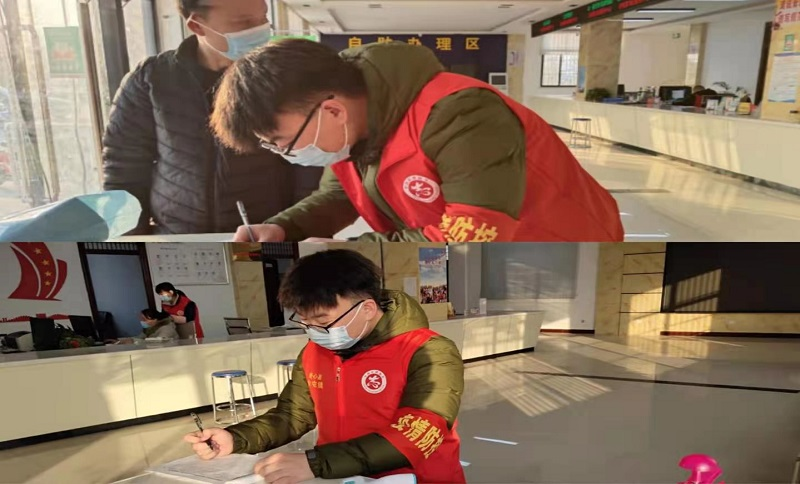研203班张如松积极响应济宁市嘉祥县金屯镇政府的号召,主动报名加入寒假抗疫志愿者队伍,于1月19日开启了抗疫志愿工作,负责镇政府疫情防控值守点和为民服务中心的来访人员登记、测温、验码等工作。在疫情防控的特殊时期,张如松同学活跃在疫情防控工作前线,他说:“我愿用自己的实际行动,发扬学生青年的先锋模范作用,为抗击疫情尽一份微薄之力!”