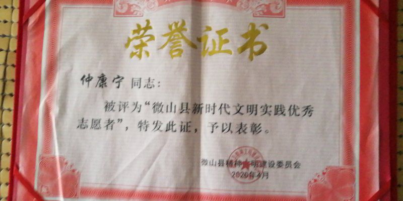 仲康宁同学寒假离校回家后,面对疫情防控的严峻形势,成为一名志愿者。在村口检查外来人员体温,宣传防疫知识,并且向敬老院捐赠物资,保证敬老院疫情期间的物资供应充足。